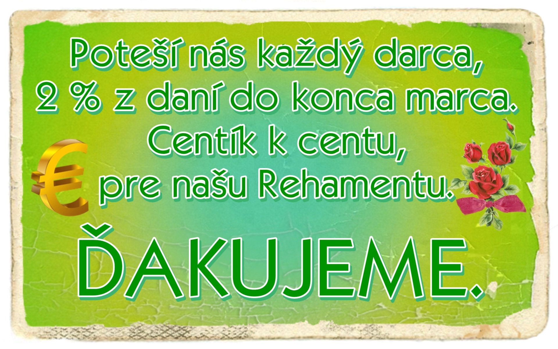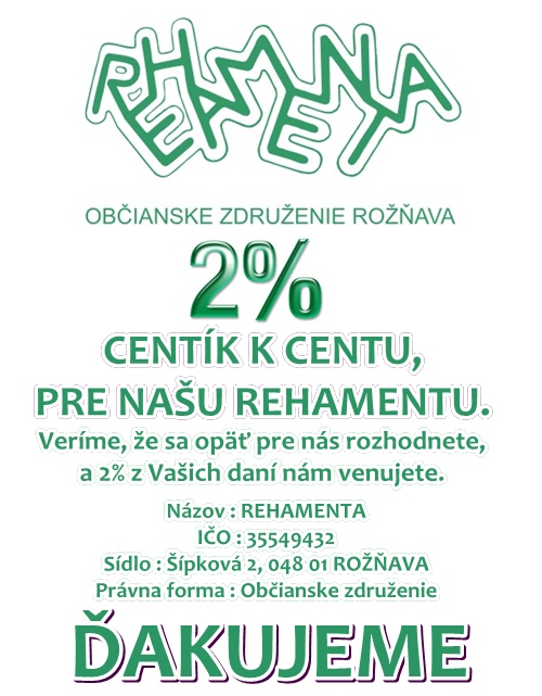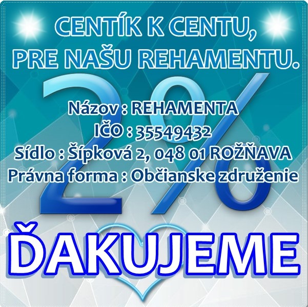 Na základe vzájomnej písomnej dohody Občianske združenie VITAE GP súhlasí s asignáciou prijímania 2% z daní fyzických a právnických osôb za rok 2025 aj pre naše OZ Rehamenta.